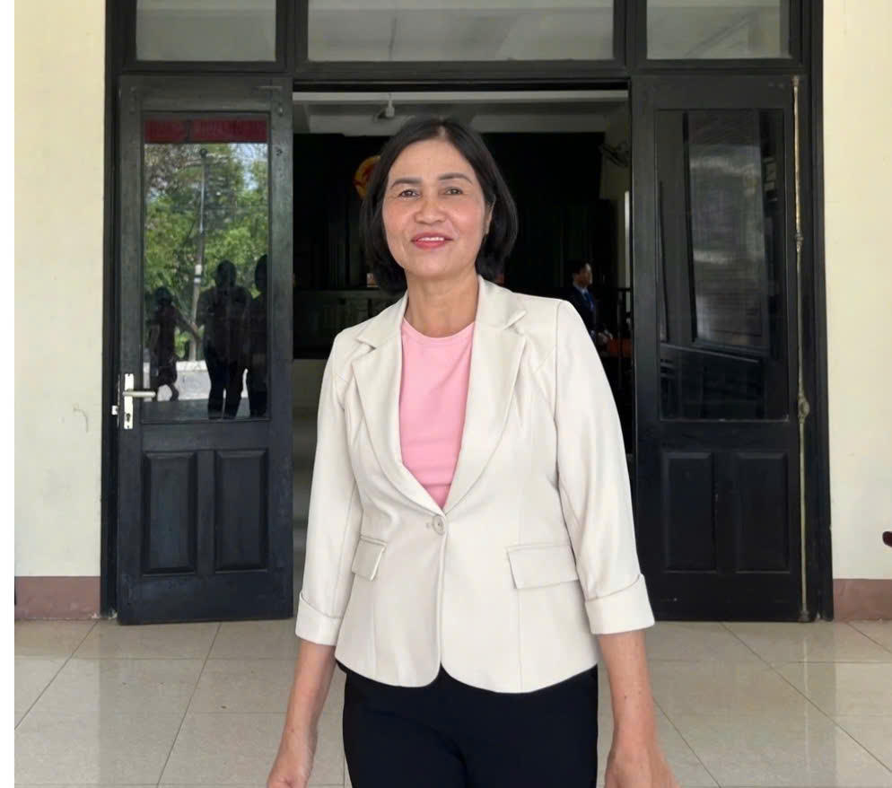 Bà Nguyệt nở nụ cười tươi sau phiên xét xử. |