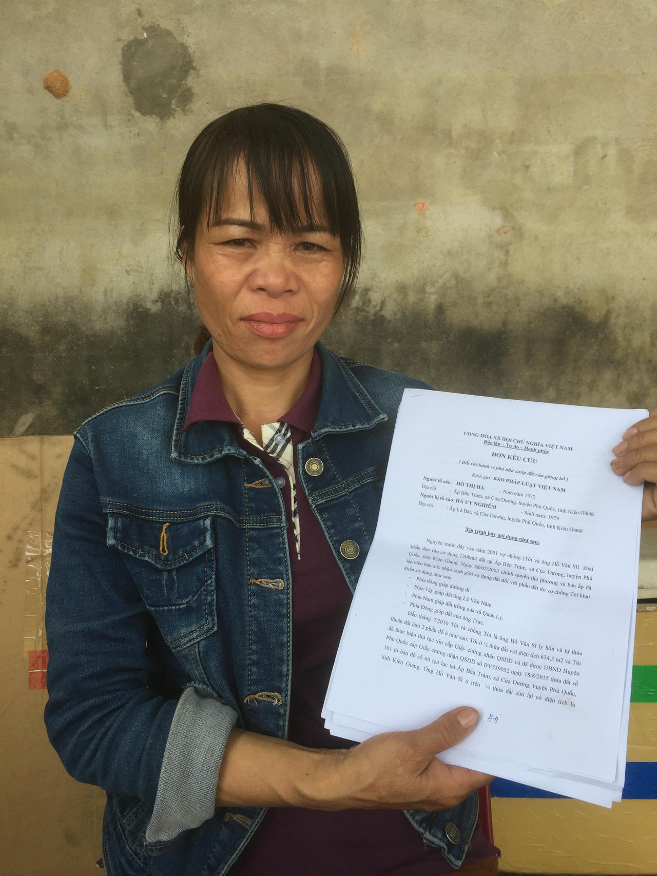 Bà Hồ Thị Hà (SN 1972, ngụ ấp Bến Tràm, xã Cửa Dương, huyện Phú Quốc, tỉnh Kiên Giang) có đơn kêu cứu đến các cơ quan chức năng, tố cáo ông Hà Uy Nghiêm (SN 1979, ngụ TP HCM) về hành vi cho hàng chục người đến phá nhà của bà. Bà bức xúc với việc công an huyện Phú Quốc không thụ lý đơn tố cáo của bà vì cho rằng hành vi của ông Nghiêm là dân sự.