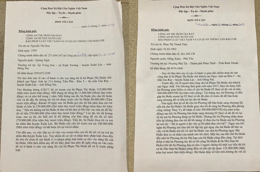 Theo bà Nguyễn Thị Mộng Huyền phản ánh trong đơn thư gửi Báo PLVN về việc bị chủ khách sạn Ngọc Anh là bà Phạm Thị Huấn có địa chỉ Khu 5 – Thị trấn Gia Ray – Xuân Lộc (Đồng Nai) nợ một khoản tiền lớn nhưng không chịu trả.