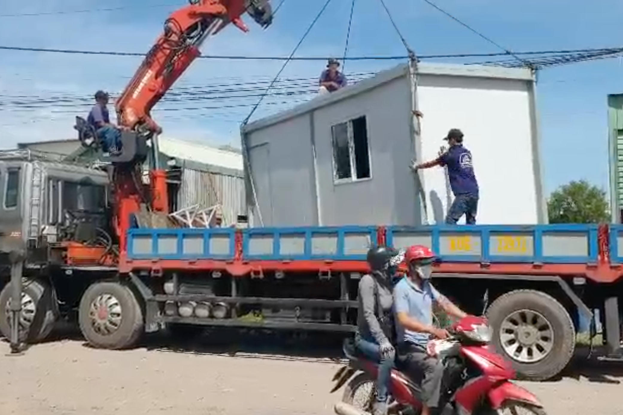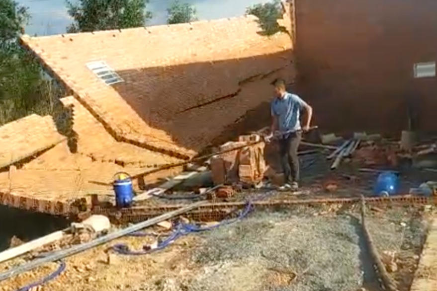 Một cảnh tháo dỡ tại công trình xây không phép ven hồ Sông Mây |