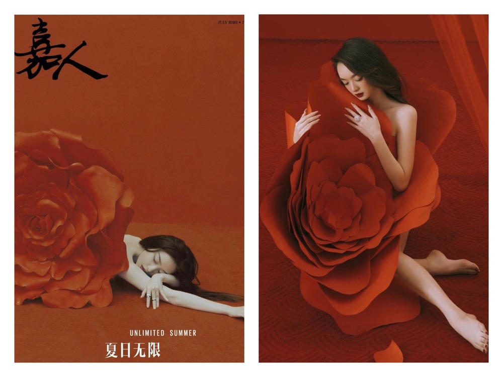 Sau đó không lâu, cư dân mạng phát hiện ra loạt ảnh này là hàng đạo nhái. Cụ thể, concept trong những bức hình của Kaity Nguyễn hoàn toàn trùng khớp với bộ ảnh mà nữ diễn viên Nghê Ni từng chụp cho tạp chí Marie Claire cách đây không lâu. Cả hai shot ảnh đều có màu chủ đạo là màu đỏ, người mẫu khoe làn da trắng ngần và mái tóc đen bên một đóa hồng khổng lồ.