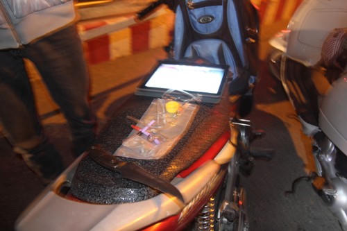 Qua kiểm tra hành chính, công an phát hiện bên trong chiếc ba lô Hải mang theo có một con dao nhọn hình lưỡi lê, một chiếc Ipad và một chiếc điện thoại.