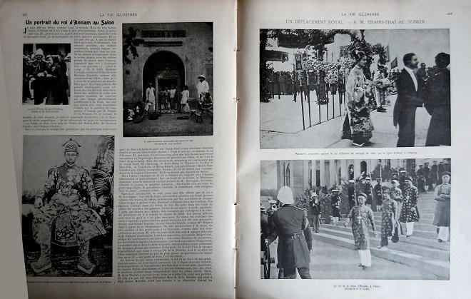 Đức Thành Thái phen này không mặc bộ ngự bào nặng nề buổi sáng, không đội mão giống nón “cát”, không đi giày bó chân cao gót nhung dạ nữa. Y phục ngài dùng phen này vừa đơn giản, gọn gàng, rất là khéo lựa và rất hợp nhãn và thanh lịch.