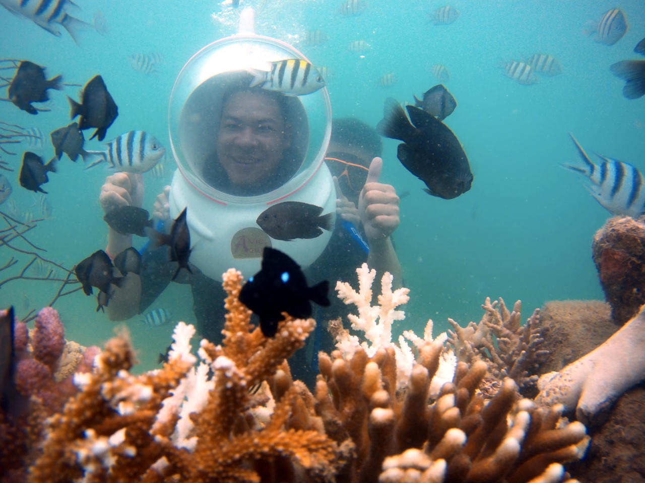 Khi đến với KDL Hòn Sỏi như một đại dương thu nhỏ, du khách tham quan sẽ có cảm giác như lạc vào cung điện của vua Thủy tề với con tàu cổ “Thủy Cung Trí Nguyên” cùng nhiều loại sinh vật biển lạ mắt và lôi cuốn. Có các loài cá quý hiếm mà bạn chưa bao giờ nhìn thấy, như cá chim Napoleon, cá Picasso hay những con cá chép Nhật Bản với hình dáng quý phái lạ thường.