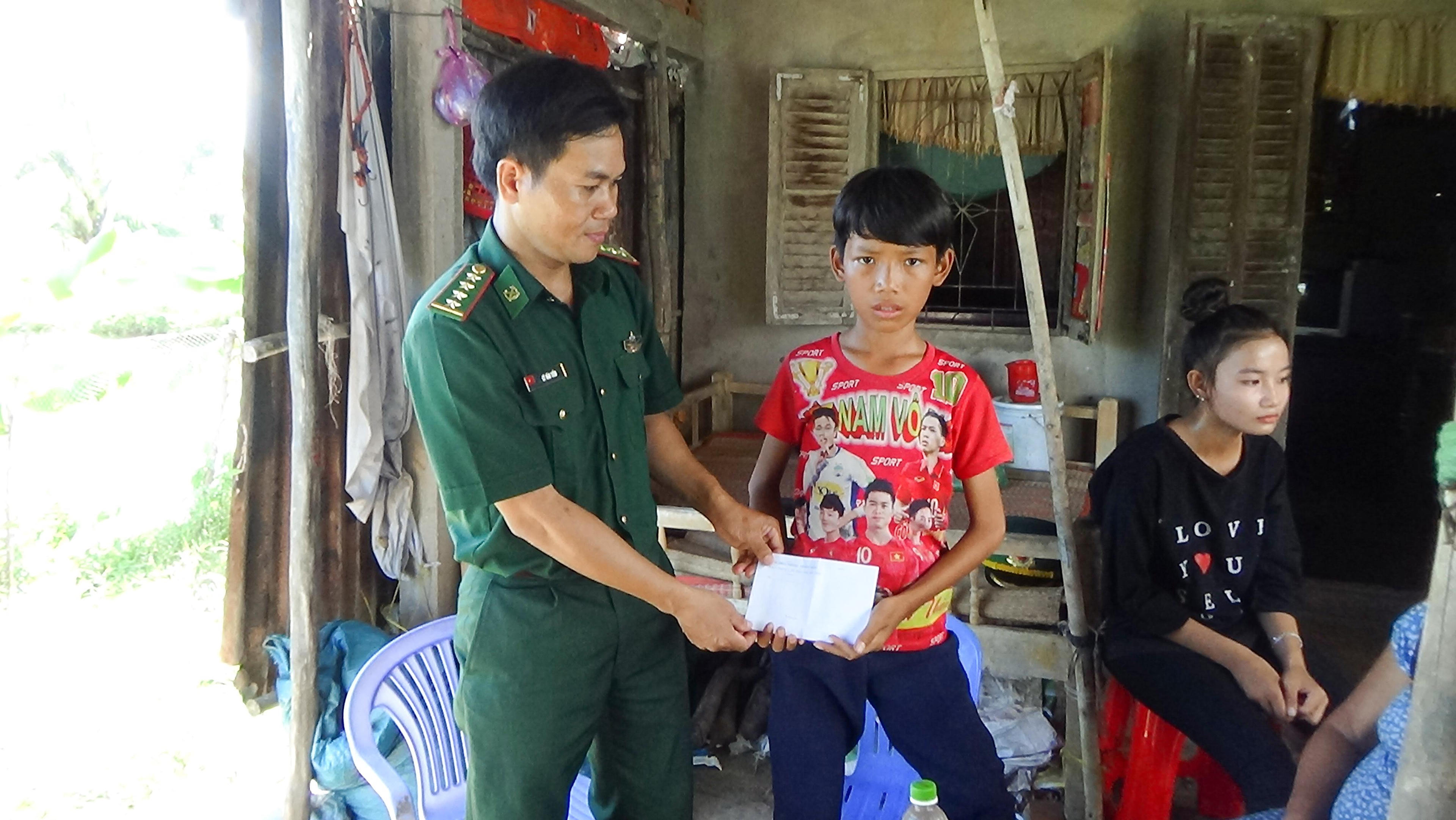 Đồn Biên phòng Vĩnh Châu đến tận nhà thăm hỏi và trao học bổng cho các em học sinh trong chương trình “Nâng bước em tới trường”. |