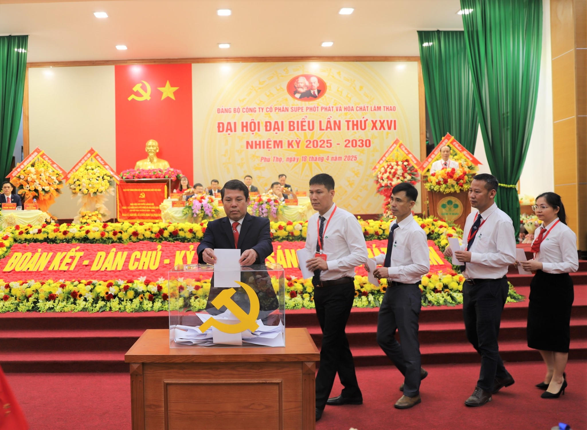 Với tinh thần dân chủ, thống nhất, Đại hội đã bầu Ban chấp hành Đảng bộ Công ty lần thứ XXVI, nhiệm kỳ 2025-2030 gồm 19 đồng chí và bầu đoàn Đại biểu gồm 17 đại biểu chính thức, 02 đại biểu dự khuyết tham dự Đại hội Đảng bộ Tập đoàn Hóa chất Việt Nam lần thứ IV, nhiệm kỳ 2025-2030.