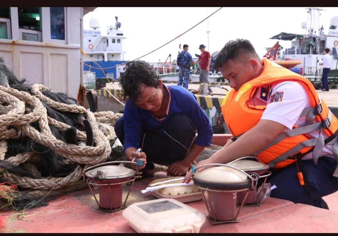 Đối với tàu KG 31569 TS (có chiều dài dưới 15m), tại thời điểm kiểm tra, trên tàu có 01 thuyền viên là ông Nguyễn Văn Nhã (SN 1990, địa chỉ thường trú tại phường An Bình, thành phố Rạch Giá, tỉnh Kiên Giang), tàu này cũng chở 04 thiết bị VMS của các tàu cá khác.