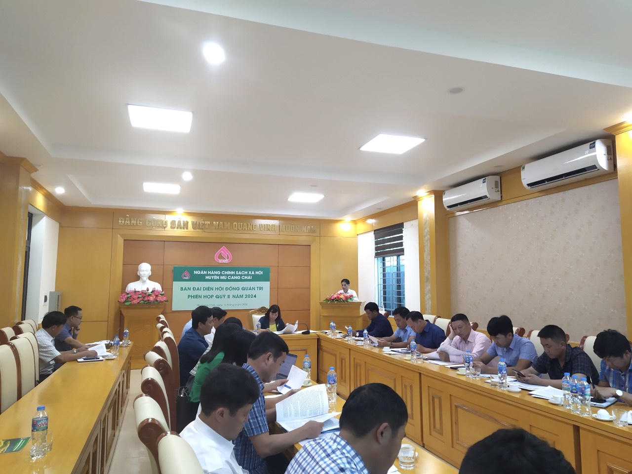 Một phiên họp của Ban đại diện Hội đồng quản trị NHCSXH huyện Mù Cang Chải. |