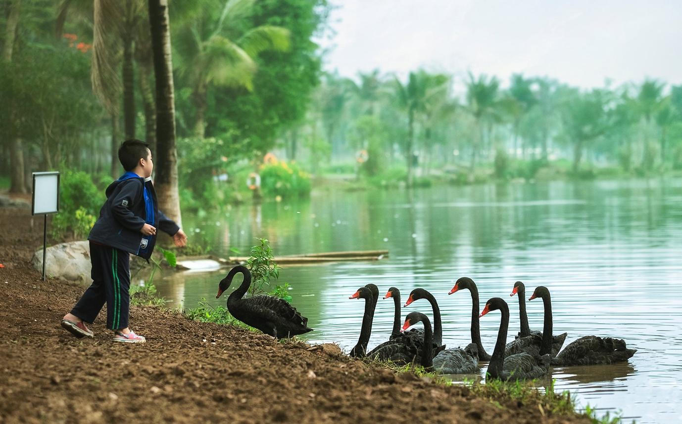 Đó sẽ là những phút vui chơi cùng các loài động vật như thiên nga, gà tây, chim công, ngỗng, thỏ… những con vật đáng yêu được ban quản lý thuần hóa, chăm sóc nên rất “dạn người”. Đó là những buổi ngoại khóa cùng bạn ngồi học vẽ bên hồ, hay cùng khám phá các loài hoa, loài cây trong các khu vườn dưới sự hướng dẫn của những người trợ giúp. Đó cũng là các lần tham gia các hoạt động cộng đồng, dịp tết Trung thu, 01/06… và hơn hết là những ký ức tràn ngập niềm vui bên gia đình. Mỗi buổi chiều, cả nhà thường hay tập trung ở công viên hồ thiên nga để đạp xe, thả diều, chạy nhảy, tản bộ và ngắm nhìn thiên nhiên xanh mát xung quanh… hoặc chèo thuyền kayak trên hồ, ngắm nhìn những chú thiên nga tự do bơi lội. Chưa bao giờ, một thiên nhiên nguyên bản, sang trọng lại gần các con đến thế.