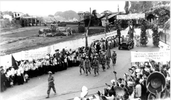 ![]() Bộ đội ta tiến vào tiếp quản Thị Xã Hòn Gai tháng 4/1955, trong sự chào đón tưng bừng của người dân. Ảnh tư liệu Bảo tàng Quảng Ninh. |