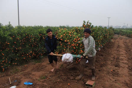 Cô Thủy, chủ một vườn trồng quất cho biết: “Ở đây, nhà trồng nhiều thì 800 đến 900 gốc , nhà trồng ít cũng từ 100 đến 200 gốc. Năm nay bán được giá mỗi cây trung bình vào khoảng 200.000đ đến 300.000đ . Nên thu về cũng được 40 -50 triệu đồng. Nhiều gia đình khác trong xã còn thu được cả trăm triệu đồng”.