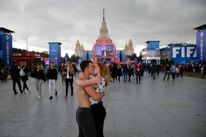 Không chỉ có những sân vận động náo nhiệt, Moskva còn quây riêng khu vực fan zone ngay trước tòa nhà chính của Đại học Lomonosov - di sản biểu tượng của kiến trúc Xô Viết. Tờ Metro tiếng Nga cho rằng fan zone đã trở thành "flirt zone" - nơi để người ta tán tỉnh nhau.