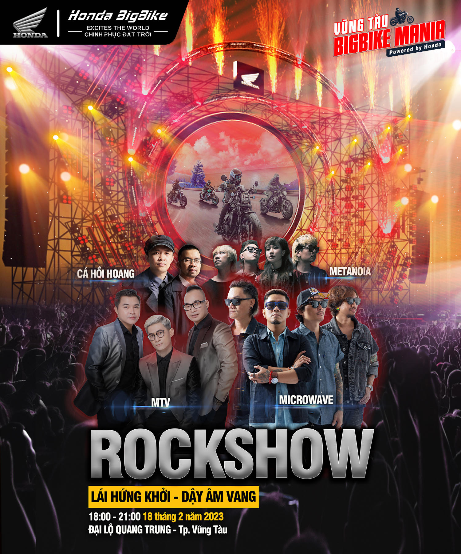Điểm nhấn đặc biệt ấn tượng của đại hội mô tô Vũng Tàu BigBike Mania là đêm nhạc Rock Show. Rock Show là một dòng chảy thời gian, đi từ những bài ca nổi danh một thời của các bạn nhạc Rock huyền thoại như MTV, Microwave cho đến các bài hát phổ biến với giới trẻ ngày nay đến từ ban nhạc Cá Hồi Hoang và Metanoia, hứa hẹn một đêm nhạc bùng cháy ngập tràn âm thanh và ánh sáng, đặc biệt là thông qua âm nhạc giúp kết nối cộng đồng Bikers từ các thế hệ mê xe đời đầu cho đến nay. Và còn rất nhiều các hoạt động đặc sắc khác đang đợi được bật mí tại đại hội mô tô của HVN.