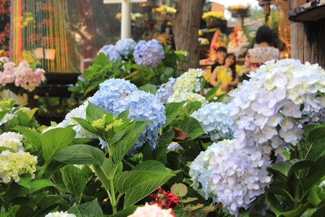 Hàng trăm cây hoa cẩm tú cầu được đưa từ Đà Lạt về trang trí.