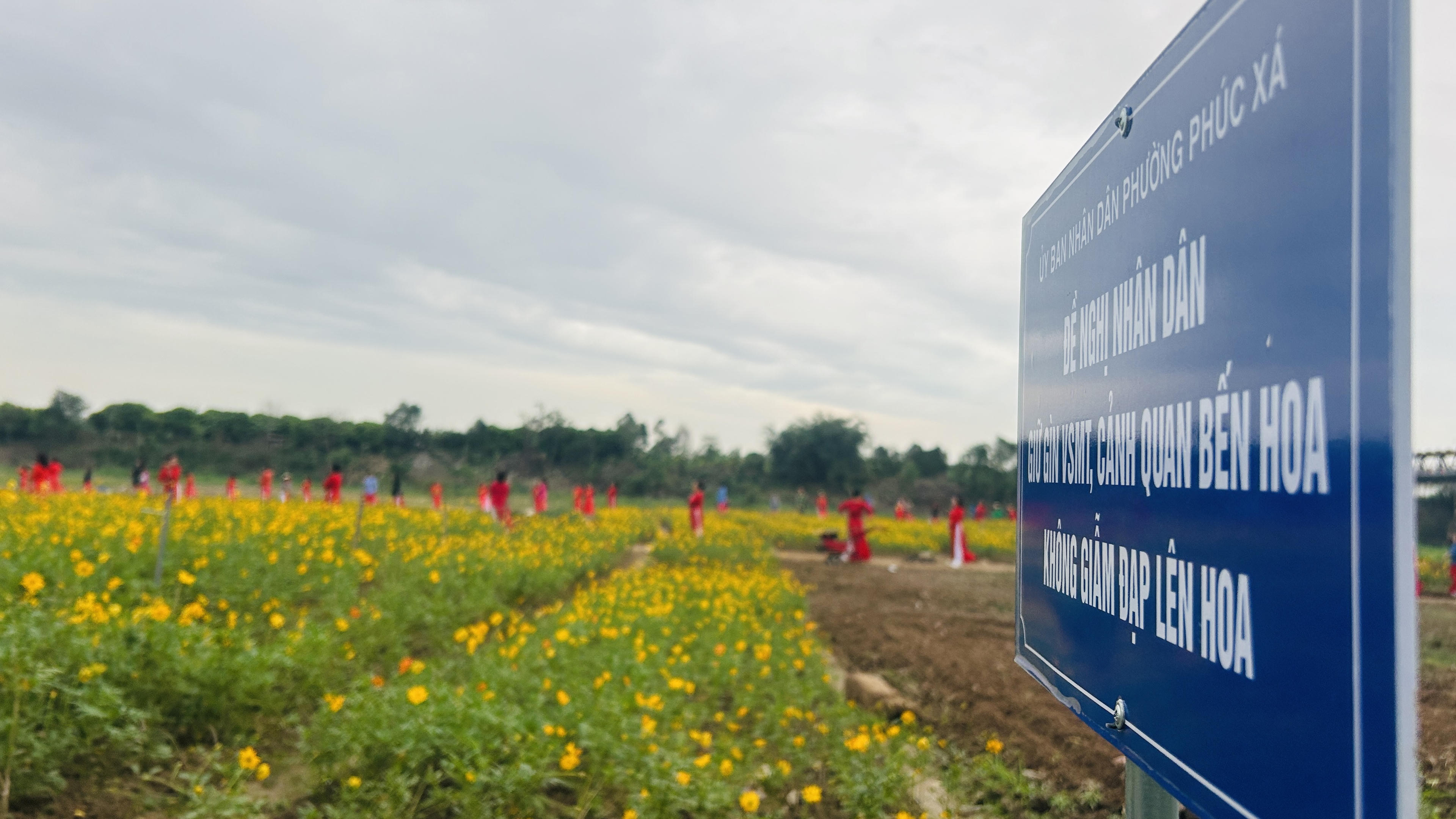 Đây là nơi từng ngập trong rác thải, sau trận lũ lịch sử hồi tháng 9 vừa qua đã bồi đắp cho khu vực này một lượng lớn phù sa màu mỡ. Để phủ xanh bãi bồi trống đồng thời tô điểm thêm cho Thủ đô, bà con nhân dân khu vực này đã cải tạo sạch sẽ, trồng thêm nhiều cây hoa cúc cánh bướm.
