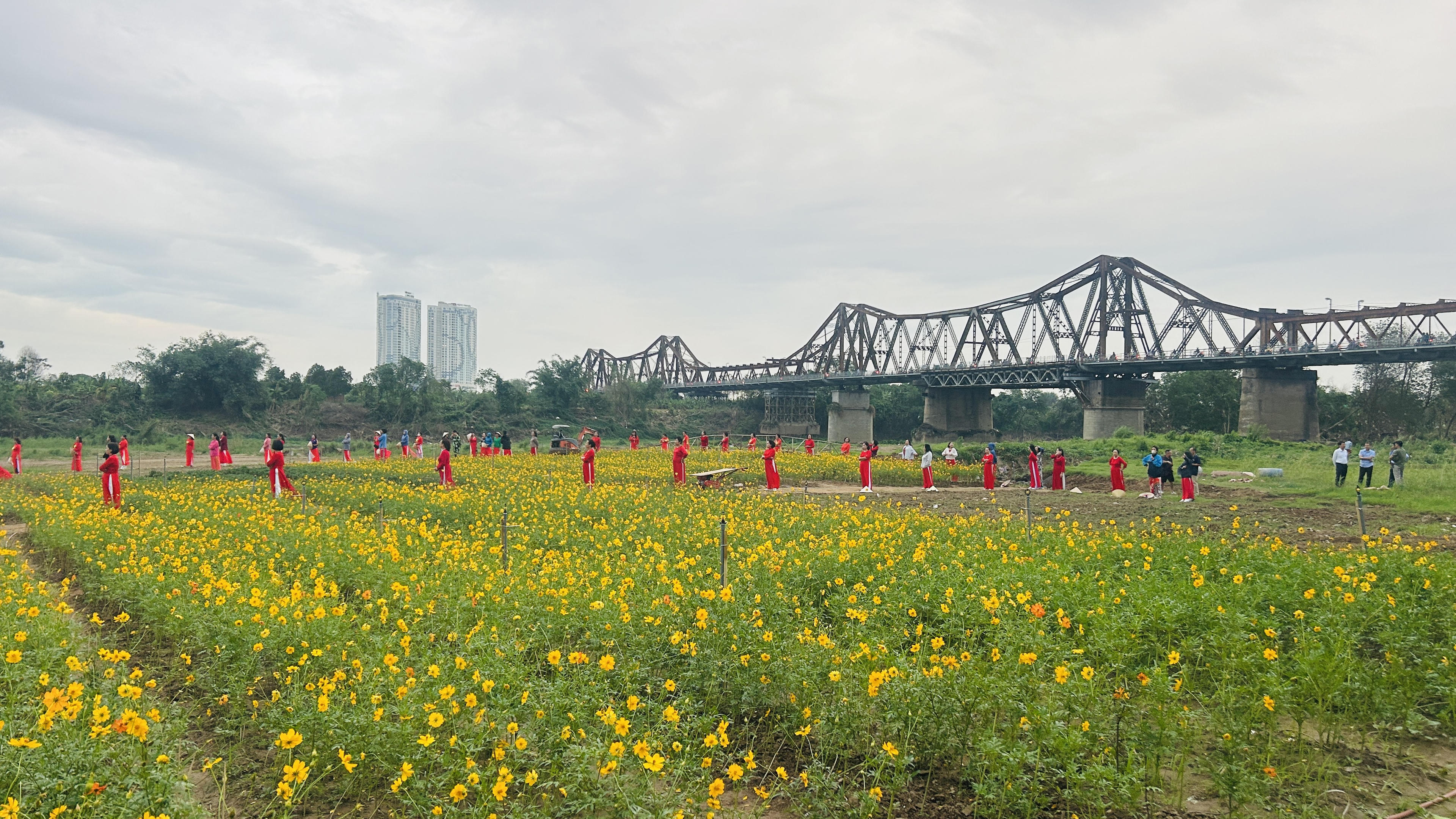 Cúc cánh bướm vàng sinh trưởng tốt đã làm thay đổi cảnh quan phía dưới chân cầu Long Biên, thu hút đông đảo người dân, đặc biệt là các nhiếp ảnh gia tới ghi lại những khoảnh khắc đẹp. Hàng vạn bông hoa cúc bướm vàng khoe sắc dưới nắng thu, tạo nên bức tranh rực rỡ, thu hút đông đảo người dân và du khách tới ngắm hoa, chụp ảnh.