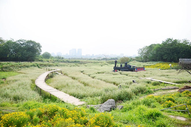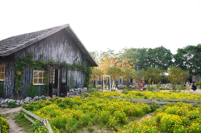 Nhiều tiểu cảnh như ga tàu, ghế, xích đu... được bố trí ngay bên trong vườn hoa đem lại cho du khách nhiều sự lựa chọn hơn để chụp ảnh.