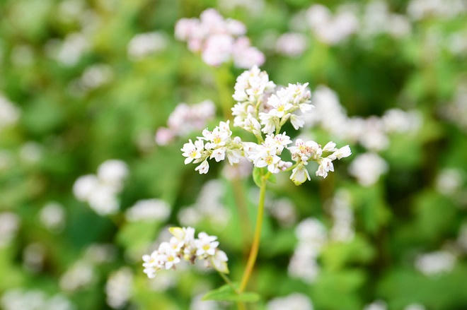 Hoa tam giác thường nở rộ trong khoảng một tháng. Ban đầu, hoa nở có màu trắng rồi dần chuyển sang phớt hồng. Từ một loài cây trồng lấy hạt, tam giác mạch được nhân giống phục vụ du lịch.
