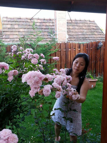 Mỗi khi có dịp về Việt Nam, chị lại đem các loại cây như tường vy, nhài, sen sang Hungary trồng... Kỳ công nhất là việc chị đem cây hoa sen từ Huế sang. Bốn năm đầu, cây không sống được do thời tiết châu Âu quá lạnh. Sau đó, vào mùa đông, chị chỉ để cây ngoài trời hai tháng rồi đưa vào trong nhà. Thời gian để cây ngoài thiên nhiên trong mùa lạnh tăng dần, sau 3 năm, cây đã lần đầu nở hoa và ra đều đặn hàng năm.