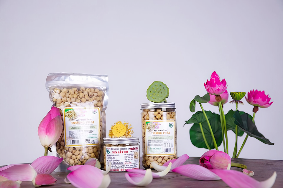 Nhờ hiểu rõ giá trị của cây sen, HTX Trường Phát không ngừng sáng tạo trong chế biến. Một trong những sản phẩm nổi bật là hạt sen sấy mật ong, kết hợp lợi ích của hạt sen với mật ong, một “siêu thực phẩm” được biết đến với tác dụng chữa ho, cải thiện trí nhớ, tăng cường miễn dịch và làm đẹp da. Sản phẩm này không chỉ giữ nguyên hương vị tự nhiên mà còn đảm bảo các giá trị dinh dưỡng nhờ áp dụng công nghệ sấy hiện đại.