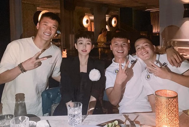 Bức ảnh Hiền Hồ chụp cùng với Quang Hải, thủ môn Bùi Tiến Dũng khiến cô vướng tin đồn đang hẹn hò với chàng tiền vệ của đội tuyển Việt Nam.