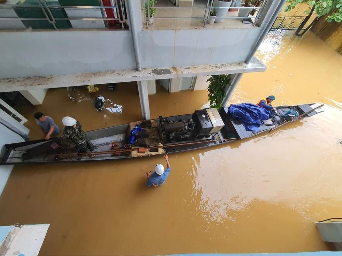 Ngày 18/10, tại các huyện Lệ Thủy, Quảng Ninh của Quảng Bình nước lũ lên cao, với mực nước lũ cao hơn các năm trước đây, dự báo sẽ bằng đỉnh lũ kỷ lục (năm 1979). Để đảm bảo giữ vững mạng lưới viễn thông, CBCNV của VNPT Quảng Bình đã khẩn trương triển khai máy nổ cứu hộ đảm bảo hoạt động cho các trạm phát.