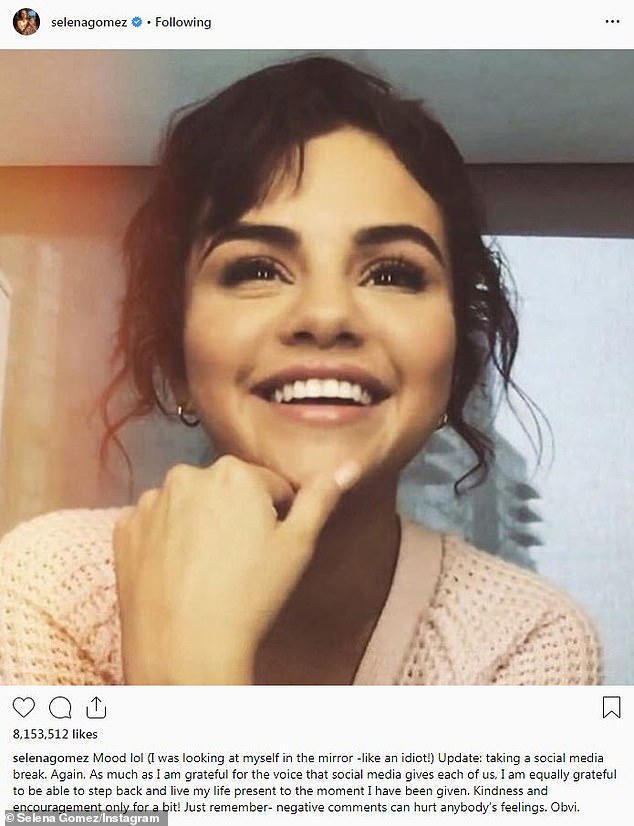 Theo Dailymail, Selena chiếm giữ vị trí nhiều người theo dõi nhiều nhất trên Instagram kể từ năm 2016 vượt qua nữ ca sĩ nổi tiếng Taylor Swift. Nhưng thời gian gần đây, do điều trị các vấn đề về sức khỏe nữ ca sĩ, diễn viên nổi tiếng người Mỹ Selena Gomez tuyên bố tạm dừng các hoạt động trên mạng xã hội.Trong khoảng thời gian vắng mặt, số lượng người ủng hộ cô trên Instagram giảm dần. Cụ thể, bức ảnh mới nhất được Selena chia sẻ là vào hôm 24/9.