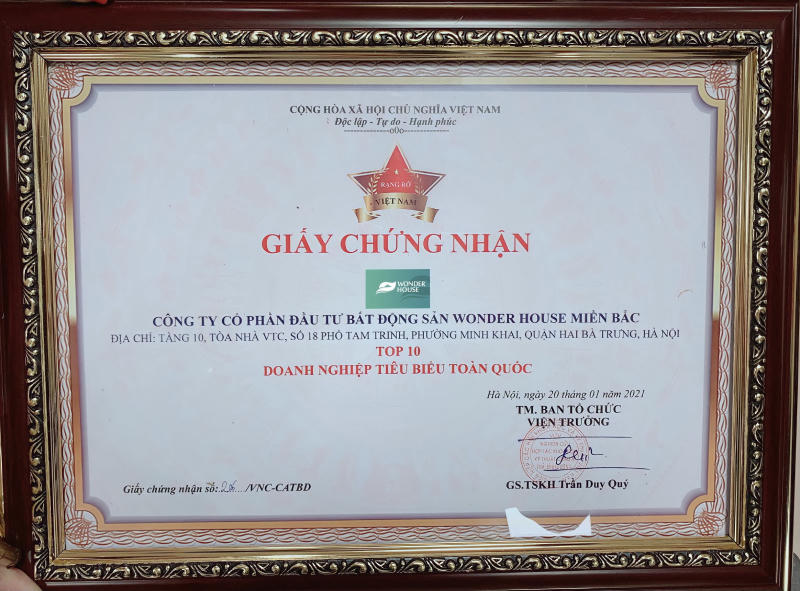 Giải thưởng Top 10 Doanh nghiệp tiêu biểu toàn quốc sẽ trở thành động lực to lớn, khích lệ và tiếp thêm sức mạnh cho Wonder House miền Bắc quyết tâm phát triển và thành công hơn nữa, đóng góp nhiều hơn nữa cho sự phát triển của thị trường bất động sản nói riêng và sự nghiệp xây dựng, và phát triển đất nước nói chung.