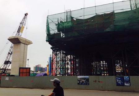 Những người chứng kiến cho hay, vào thời điểm trên, ôtô Honda Civic biển số 30M-0070 đang lưu thông tại nút giao thông Nguyễn Trãi. Lúc này, tại công trình đường sắt trên cao các công nhân vẫn tiến hành thi công bình thường.