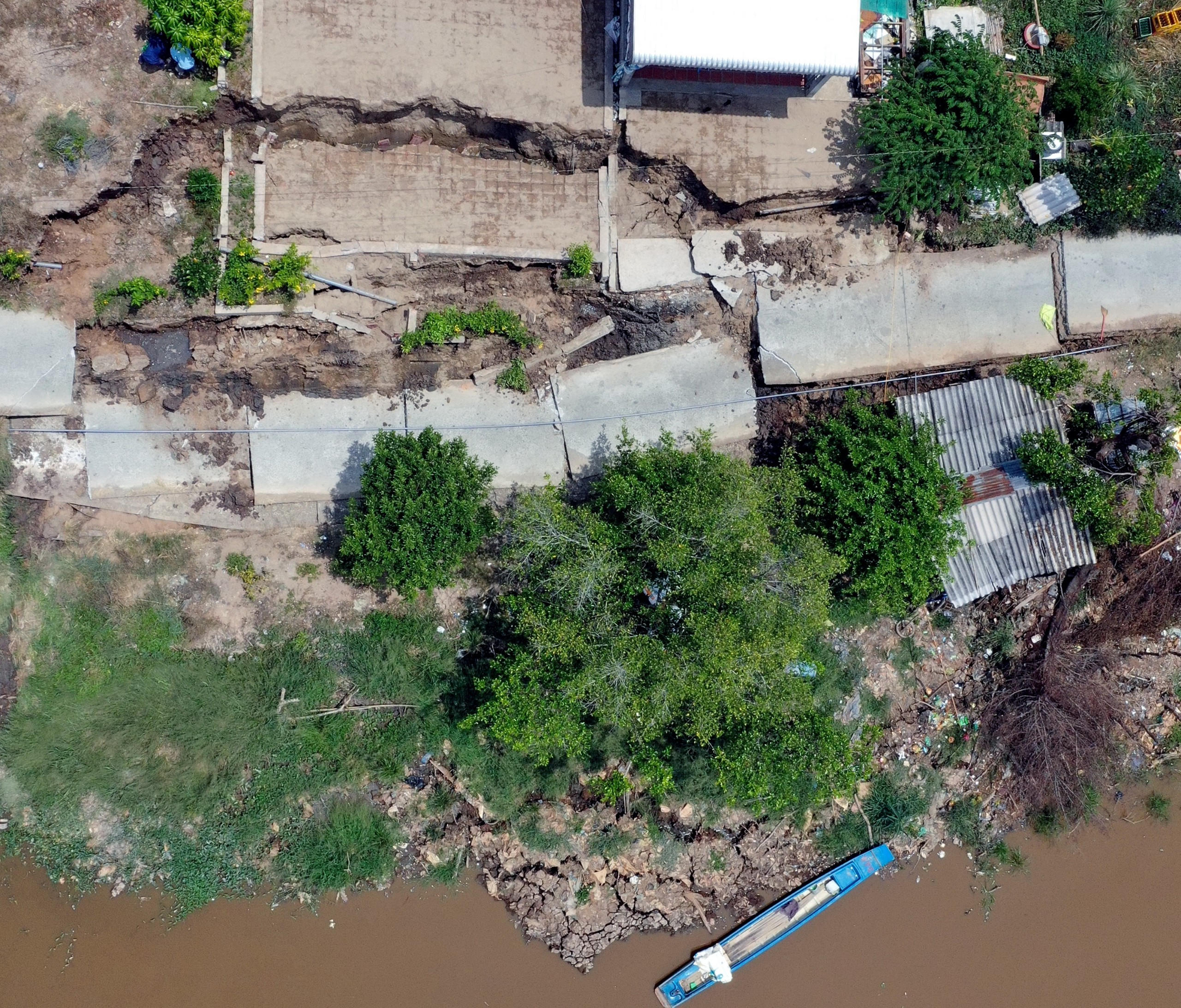 (PLVN) - Sáng nay - 18/3, trên địa bàn xã Khánh Bình Tây (huyện Trần Văn Thời, Cà Mau) tiếp tục xảy ra tình trạng sụt lún, gây hư hại một đoạn đường, chia cắt giao thông hoàn toàn tại một khu dân cư.