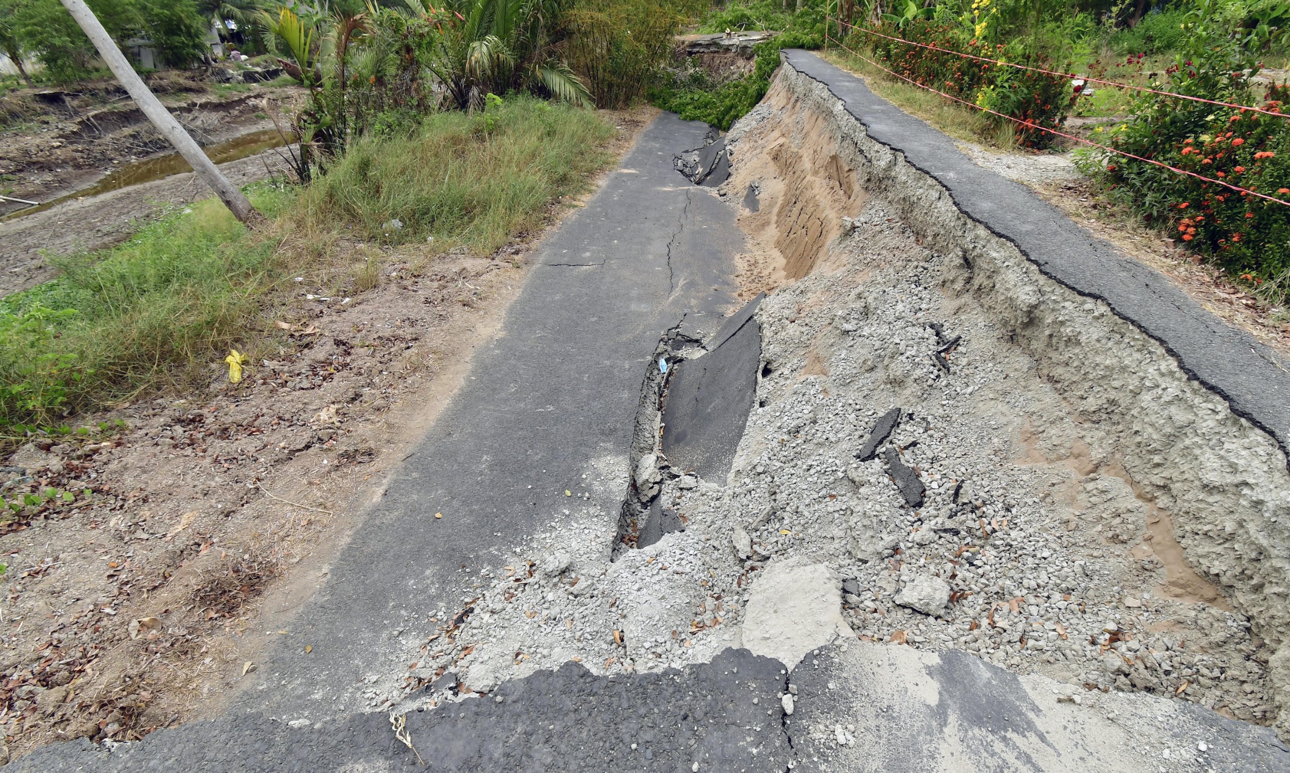Do đó, sự cố sụt lún không những gây hư hại, chia cắt hoàn toàn tuyến giao thông mà còn gây hư hại tuyến ống dẫn nước sạch cung cấp cho khu dân cư trên địa bàn.