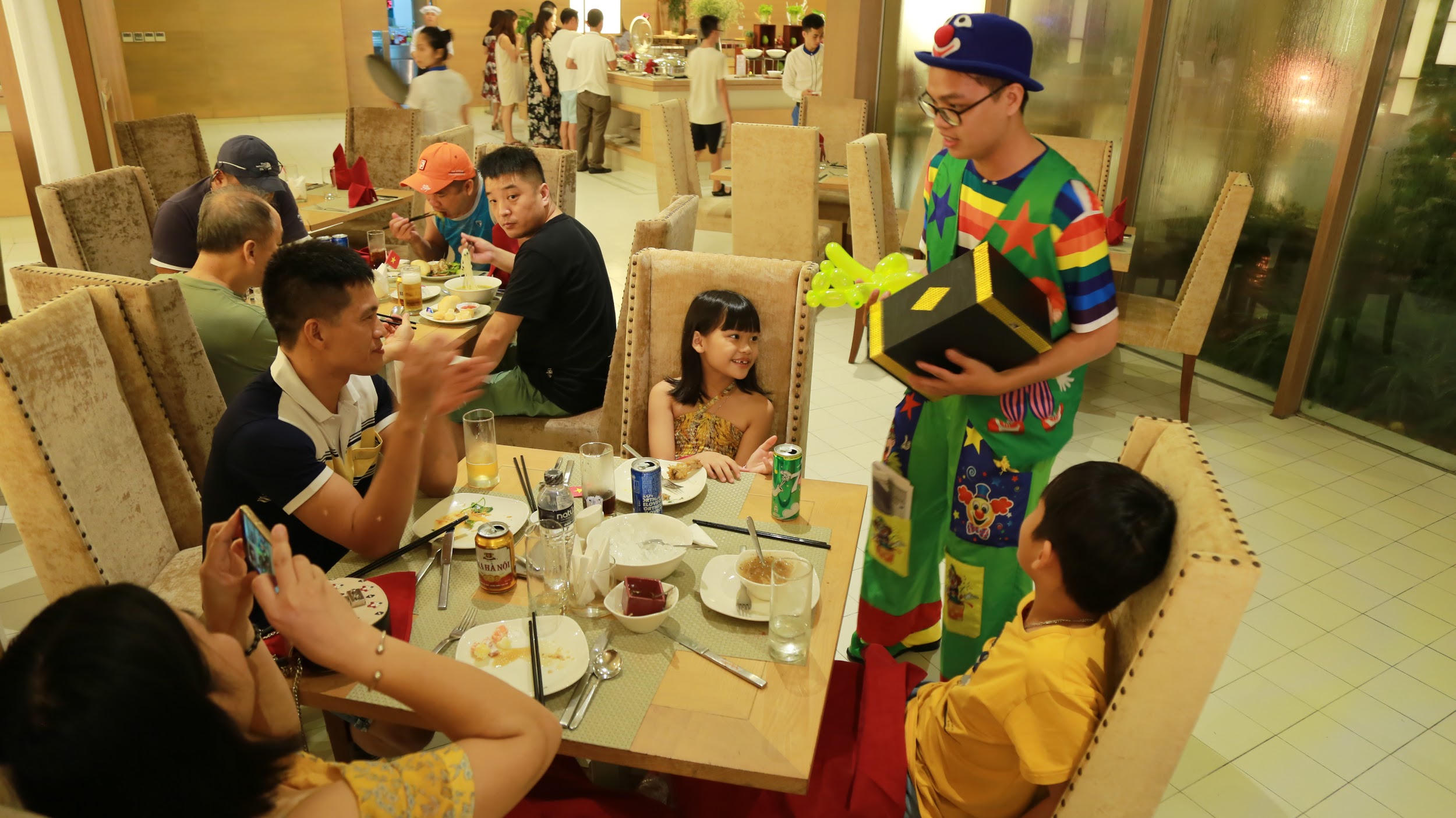 Trong khi đó, với vị trí thuận lợi gần Thủ đô và hệ thống tiện ích đa dạng 4 mùa, FLC Vĩnh Phúc là địa điểm được khá nhiều gia đình lựa chọn trong mùa lễ năm nay. Tiệc Gala Dinner ấm cúng tại nhà hàng chính của khu nghỉ không còn bàn trống.