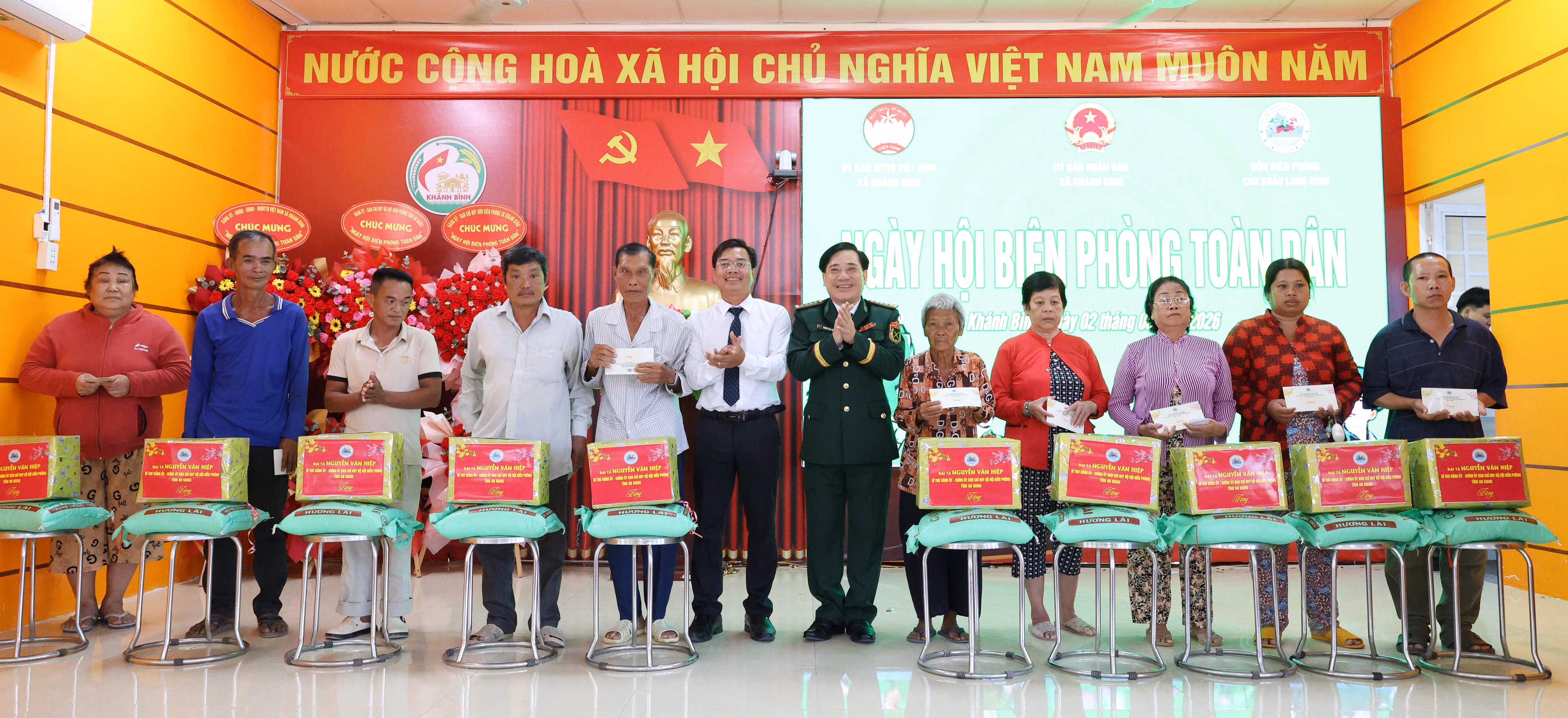 UBND, Ủy ban MTTQ Việt Nam xã Khánh Bình (An Giang) vừa phối hợp với Đồn Biên phòng cửa khẩu Long Bình (Ban Chỉ huy Bộ đội Biên phòng tỉnh An Giang) tổ chức Ngày hội Biên phòng toàn dân năm 2026.