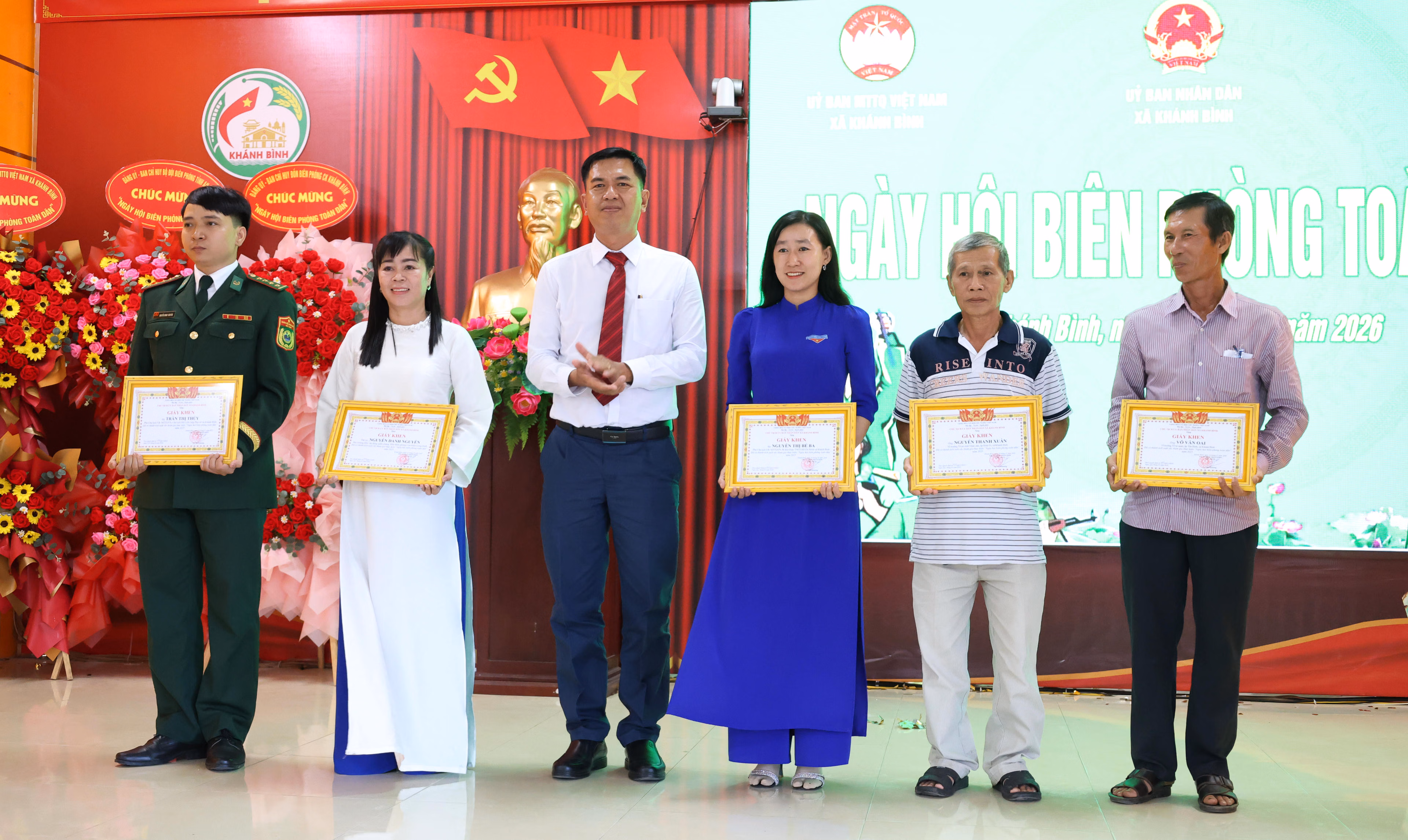 Dịp này, 1 cá nhân nhận bằng khen của UBND tỉnh; 1 tập thể nhận giấy khen của Ban Chỉ huy Bộ đội Biên phòng tỉnh; 3 tập thể và 5 cá nhân nhận giấy khen của UBND xã Khánh Bình vì có thành tích xuất sắc trong thực hiện Ngày Biên phòng toàn dân năm 2025 và thực hiện Chỉ thị số 01 của Thủ tướng Chính phủ về phát động thực hiện phong trào toàn dân tham gia bảo vệ chủ quyền lãnh thổ, an ninh biên giới quốc gia trong tình hình mới.