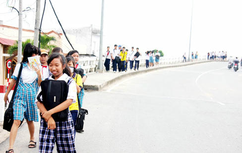 Hàng trăm học sinh trên xe khác đưa rước phải rời xe xuống đi bộ để trở về nhà. Nhiều xe tải đứng hai đầu cầu chờ lực lượng chức năng xử lý xong mới tiếp tục hành trình.