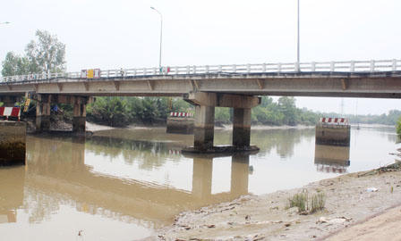 (PLO) -Chiều nay, 25/10, hai đầu cầu Bà Sáu bắc ngang sông Rạch Tôm trên đường Nguyễn Bình thuộc xã Nhơn Đức, huyện Nhà Bè, TP.HCM bị phong tỏa, ngăn phương tiện có tải trọng nặng di chuyển qua để khắc phục sự cố đảm bảo an toàn.