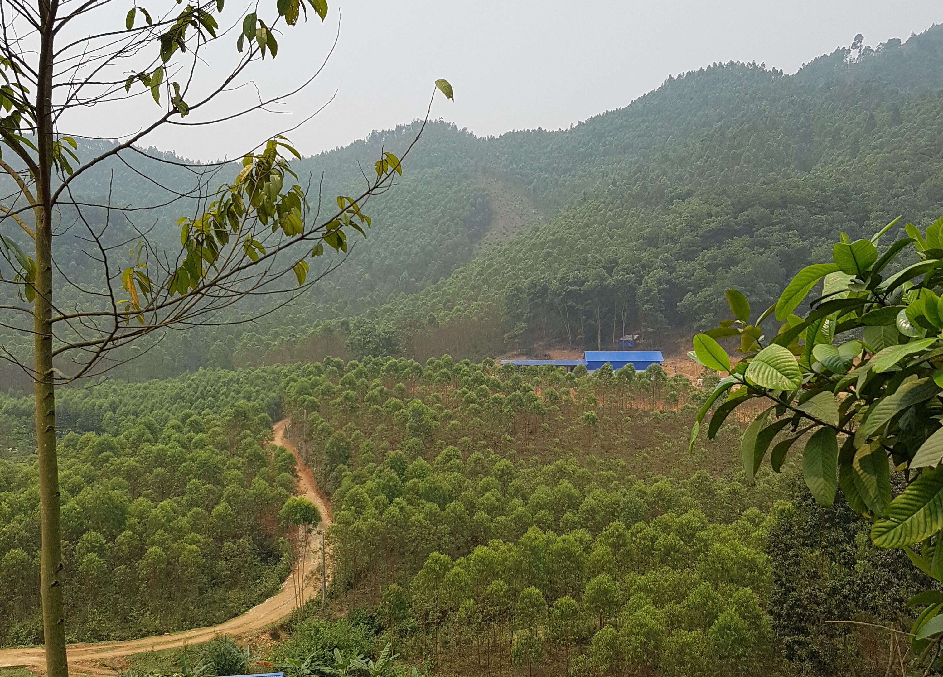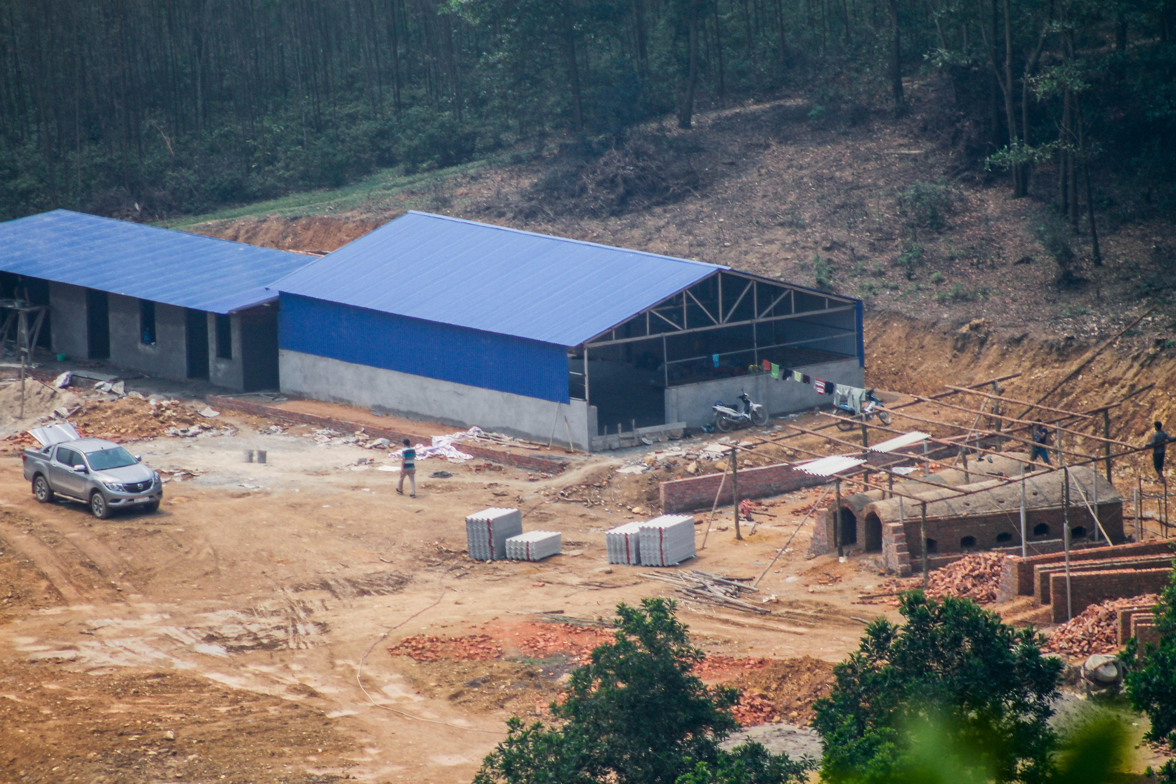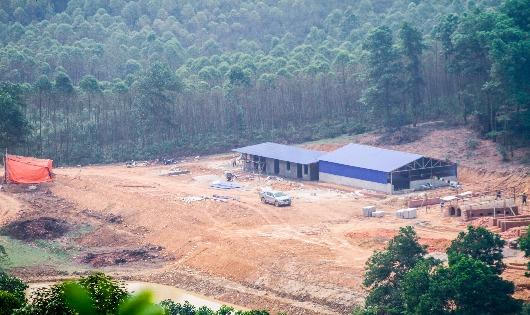 Cách thanh chắn đường khoảng 800m, PV PLVN đi bộ khoảng 3,5 km trên lối mòn sườn núi Đá Bia, trước mắt PV là một đại công trường phá rừng phòng hộ để xây dựng nhà xưởng với khúng sắt lợp mái tôn, lò đốt hình vòm đang đi vào hoàn thiện.