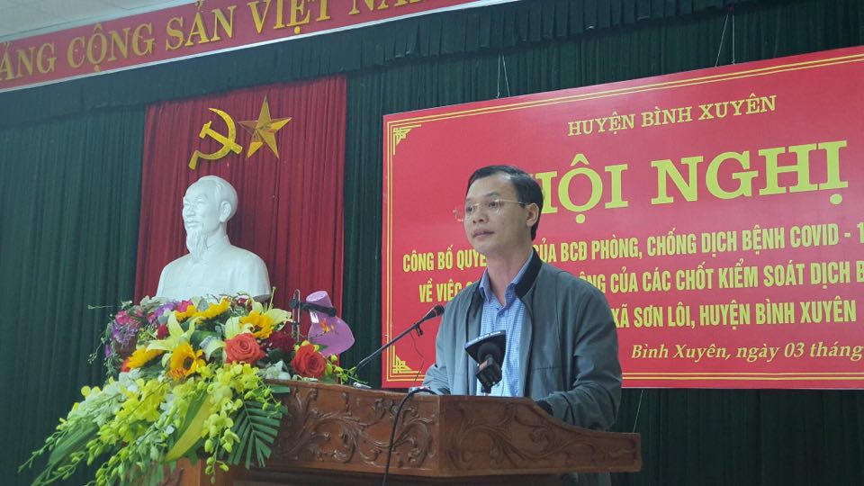 Phát biểu tại Hội nghị công bố quyết định của BCĐ phòng, chống dịch bệnh Covid-19 tỉnh Vĩnh Phúc về việc chấm dứt hoạt động của các chốt kiểm soát dịch bệnh Covid-19 trên địa bàn xã Sơn Lôi, ông Nguyễn Văn Trì, chủ tịch UBND tỉnh Vĩnh Phúc, trưởng ban chỉ đạo phòng chống dịch tại Vĩnh Phúc nói: "Việc chống dịch không chỉ riêng Vĩnh Phúc mà còn phòng tránh lây lan ra cộng đồng. Xã Sơn Lôi đến giờ này đã thở phào nhẹ nhõm chuẩn bị chính thức gỡ bỏ lệnh cách ly.