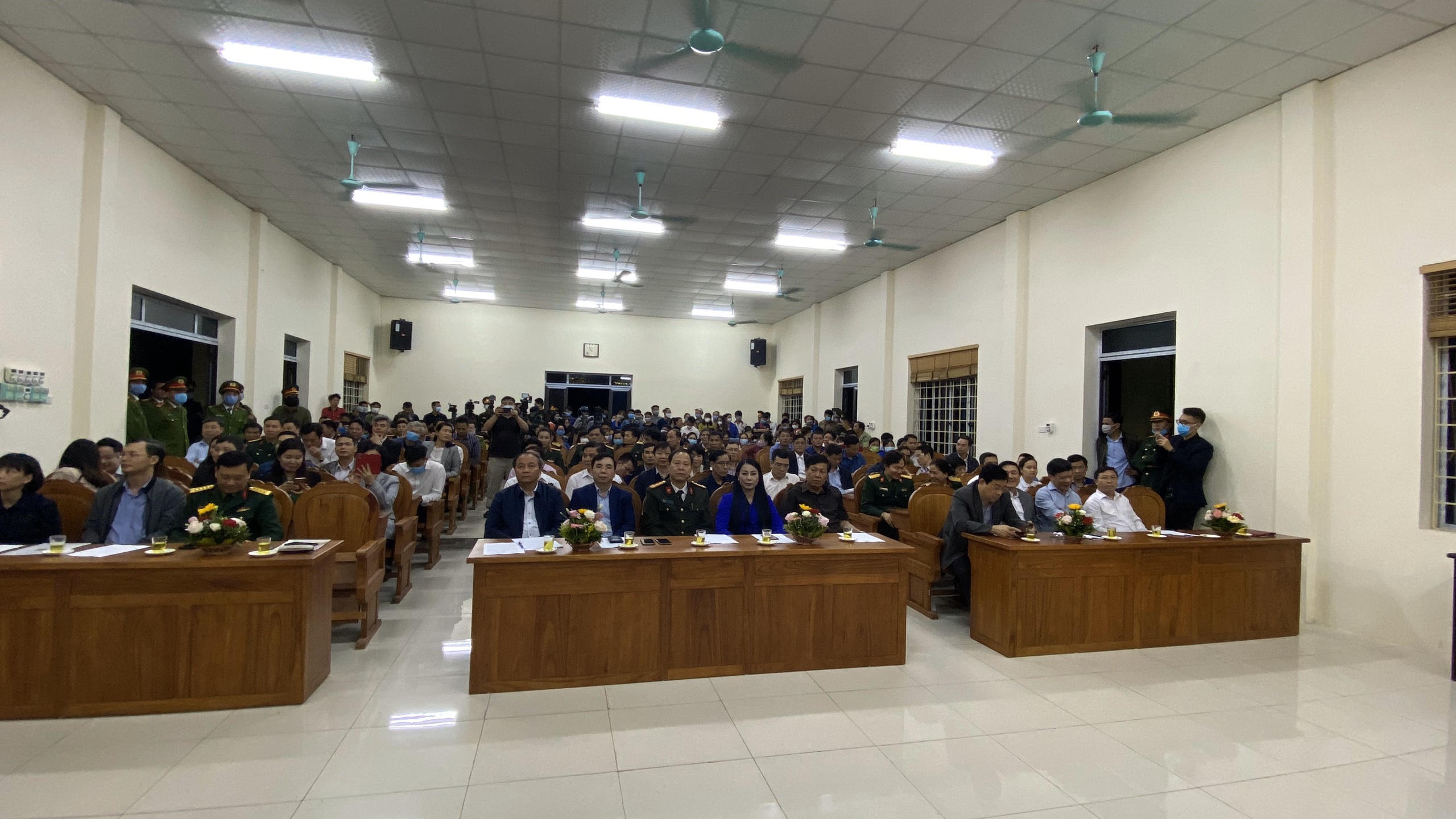 Rất đông người dân trong xã đã di chuyển đến UBND xã Sơn Lôi để dự buổi lễ công bố quyết định của BCĐ phòng chống dịch bệnh COVID-19 về việc chấm dứt hoạt động của các chốt kiểm soát dịch bệnh.