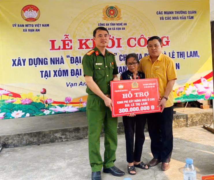 Ngày 7/4, Công an xã Vạn An chủ trì, phối hợp với Phòng Tổ chức cán bộ Công an tỉnh Nghệ An, Ủy ban Mặt trận Tổ quốc Việt Nam xã đã tổ chức Lễ khởi công xây dựng nhà “Đại đoàn kết” cho bà Lê Thị Lam thuộc diện hộ nghèo có hoàn cảnh đặc biệt khó khăn ở xóm Đại Đồng, xã Vạn An.