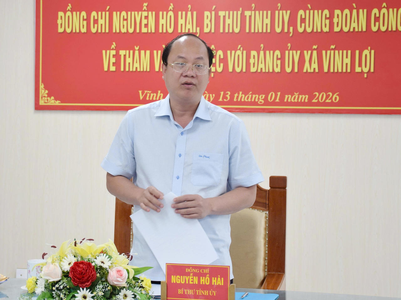 Phát biểu chỉ đạo tại buổi làm việc, ông Nguyễn Hồ Hải - Bí thư Tỉnh ủy Cà Mau yêu cầu Ban Thường vụ Đảng ủy xã Vĩnh Lợi tiếp tục giữ vững đoàn kết, thống nhất nội bộ, thực hiện nghiêm nguyên tắc tập trung dân chủ, đề cao trách nhiệm người đứng đầu, siết chặt kỷ luật, kỷ cương công vụ, nâng cao chất lượng lãnh đạo, điều hành.