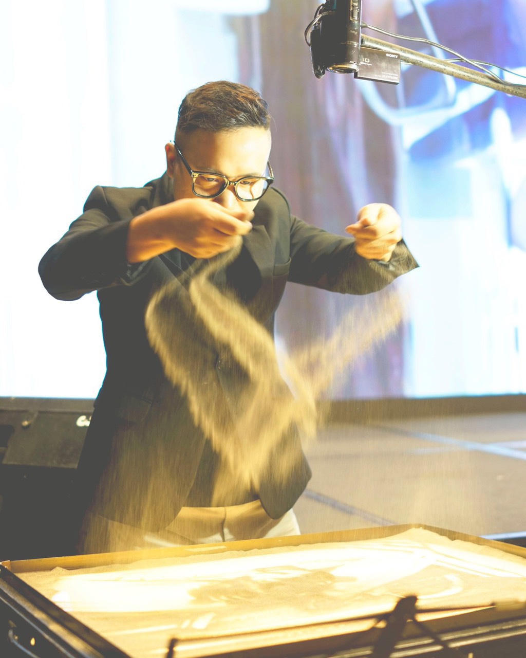 Nam nghệ sĩ trình diễn tranh cát. Ảnh: NVCC |