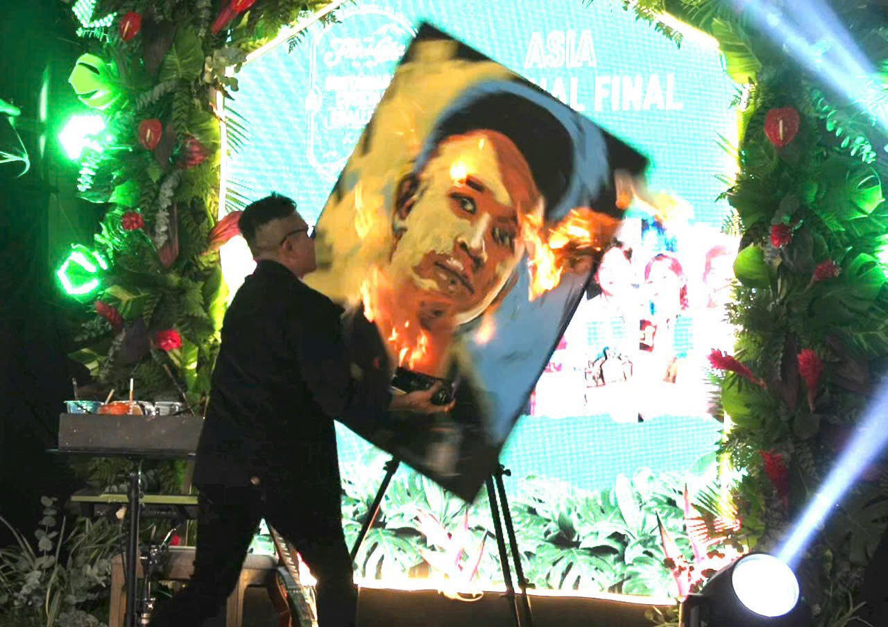 Nguyễn Tiến quan niệm, mỗi họa sĩ trình diễn hội hoạ cần có kỹ năng sáng tạo. Ảnh: NVCC |