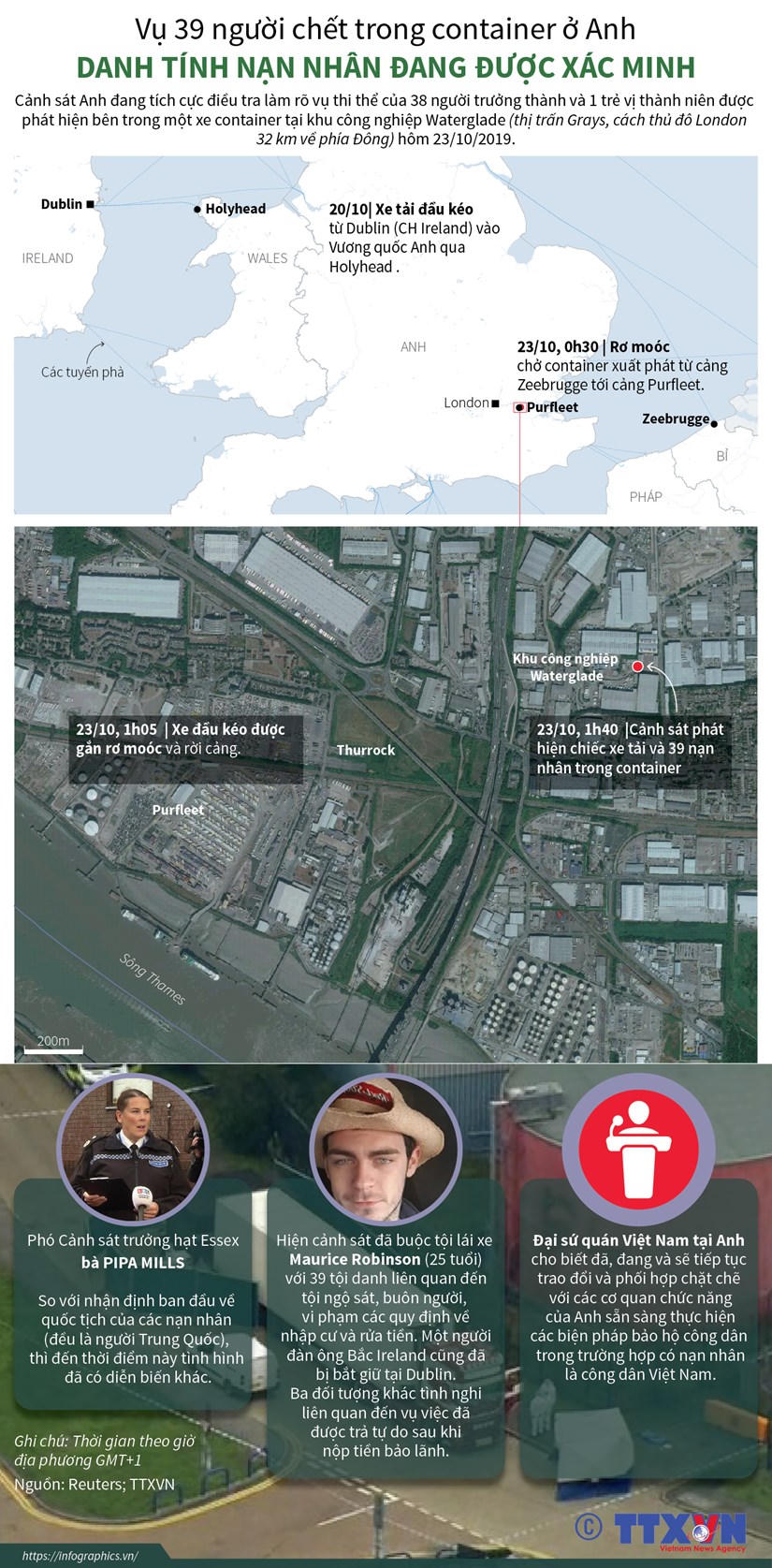 Vụ thi thể của 38 người trưởng thành và 1 trẻ vị thành niên được phát hiện bên trong một xe container tại khu công nghiệp Waterglade (hôm 23/10) đang được Cảnh sát Anh tích cực điều tra làm rõ.