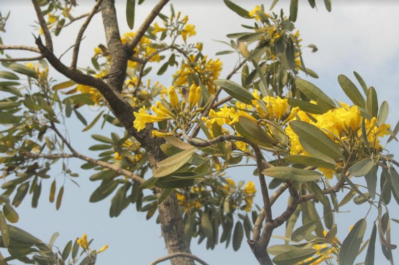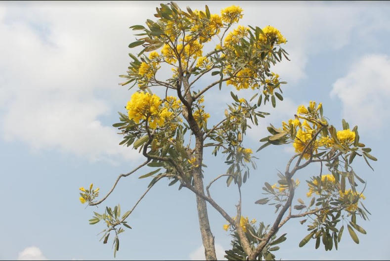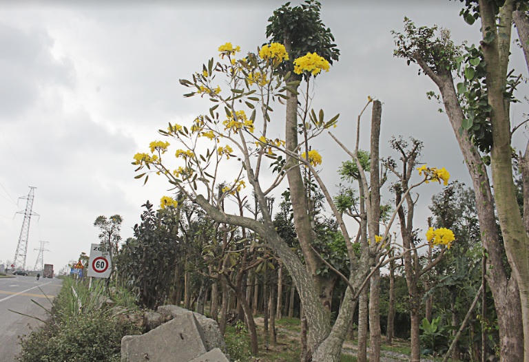 | Vẻ đẹp của sắc vàng giữa những tán lá xanh trong khung cảnh trời trong mây trắng khiến người qua đường bất giác xao xuyến |