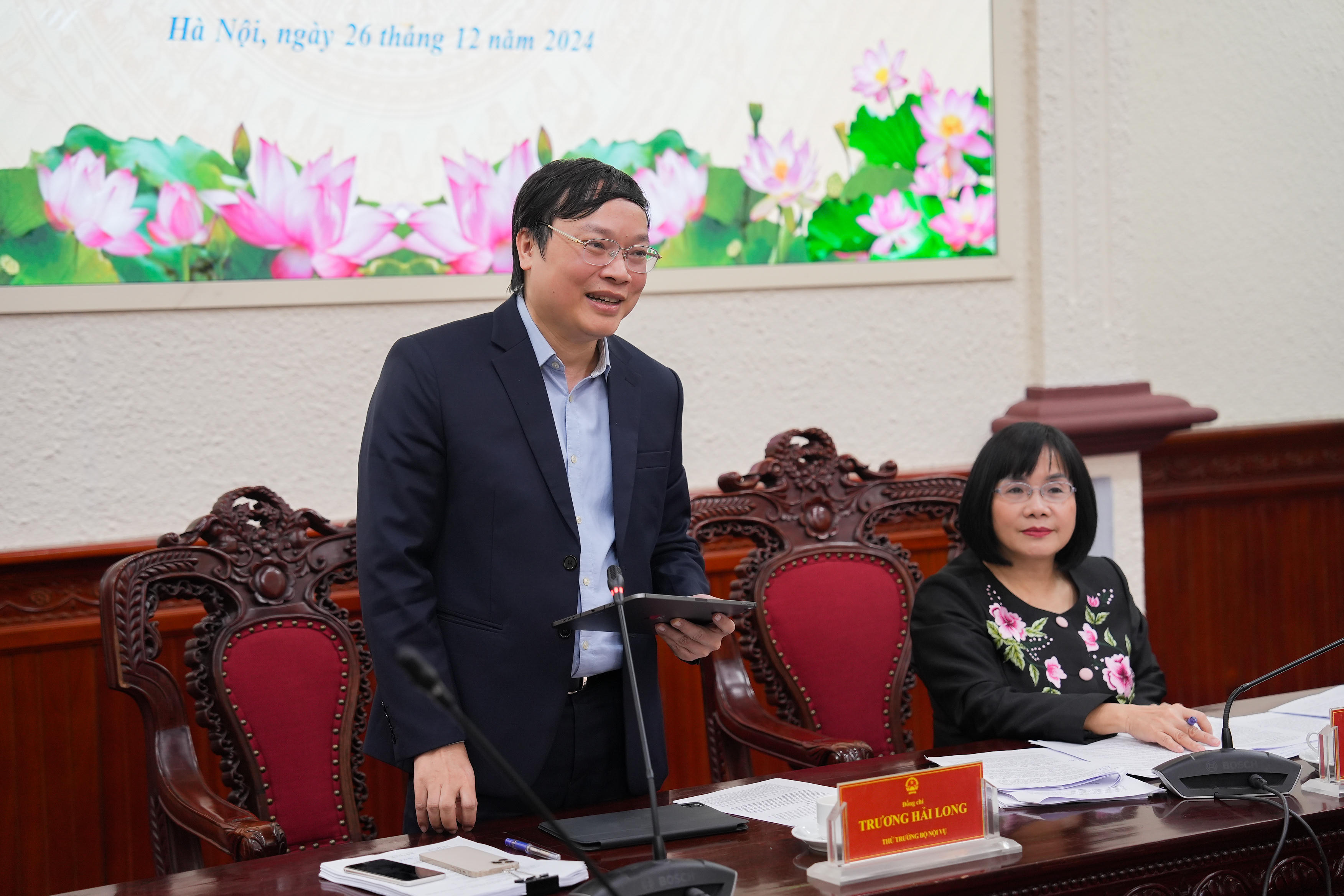 Thứ trưởng Bộ Nội vụ Trương Hải Long phát biểu tại cuộc họp. |