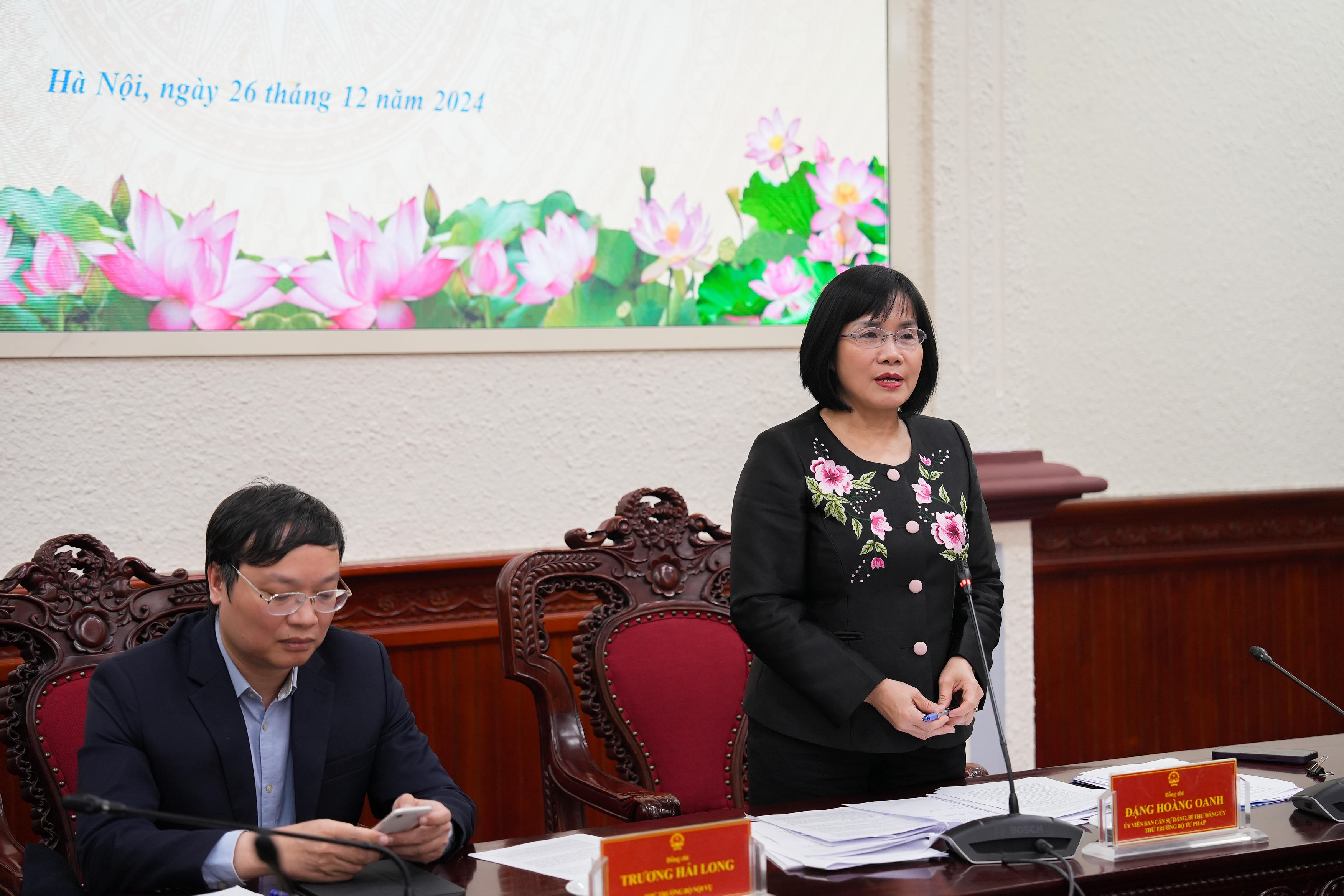 (PLVN) -Ngày 26/12, Thứ trưởng Bộ Tư pháp Đặng Hoàng Oanh chủ trì Hội đồng thẩm định đề nghị xây dựng Luật Cán bộ, công chức (sửa đổi). Cùng dự có Thứ trưởng Bộ Nội vụ Trương Hải Long.