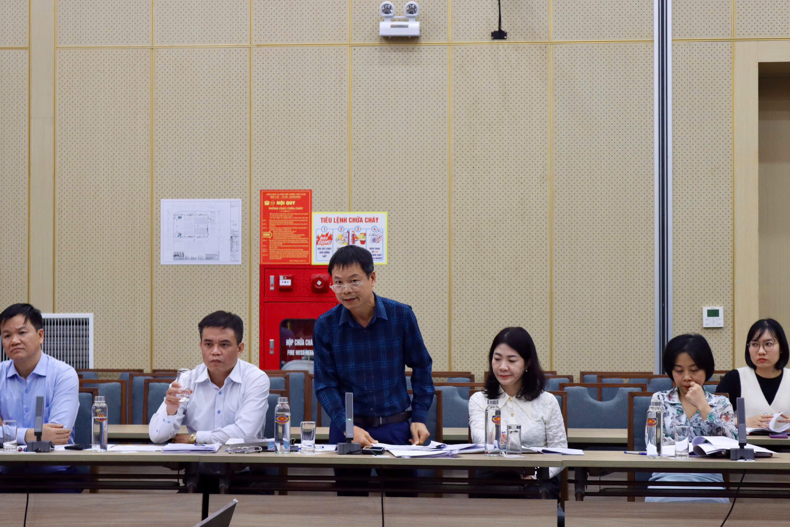 Tại cuộc họp, các thành viên Tổ soạn thảo cho ý kiến về trình tự, thủ tục miễn nhiệm Chấp hành viên; bổ nhiệm Chấp hành viên; quản lý, sử dụng kinh phí được bố trí tương ứng với khoản phí thi hành án dân sự và các khoản thu hợp pháp khác của cơ quan thi hành án dân sự sau khi nộp ngân sách nhà nước; thẻ, công cụ hỗ trợ, trang phục, phù hiệu, cấp hiệu và chế độ đối với chấp hành viên, thẩm tra viên, người làm công tác thi hành án dân sự.