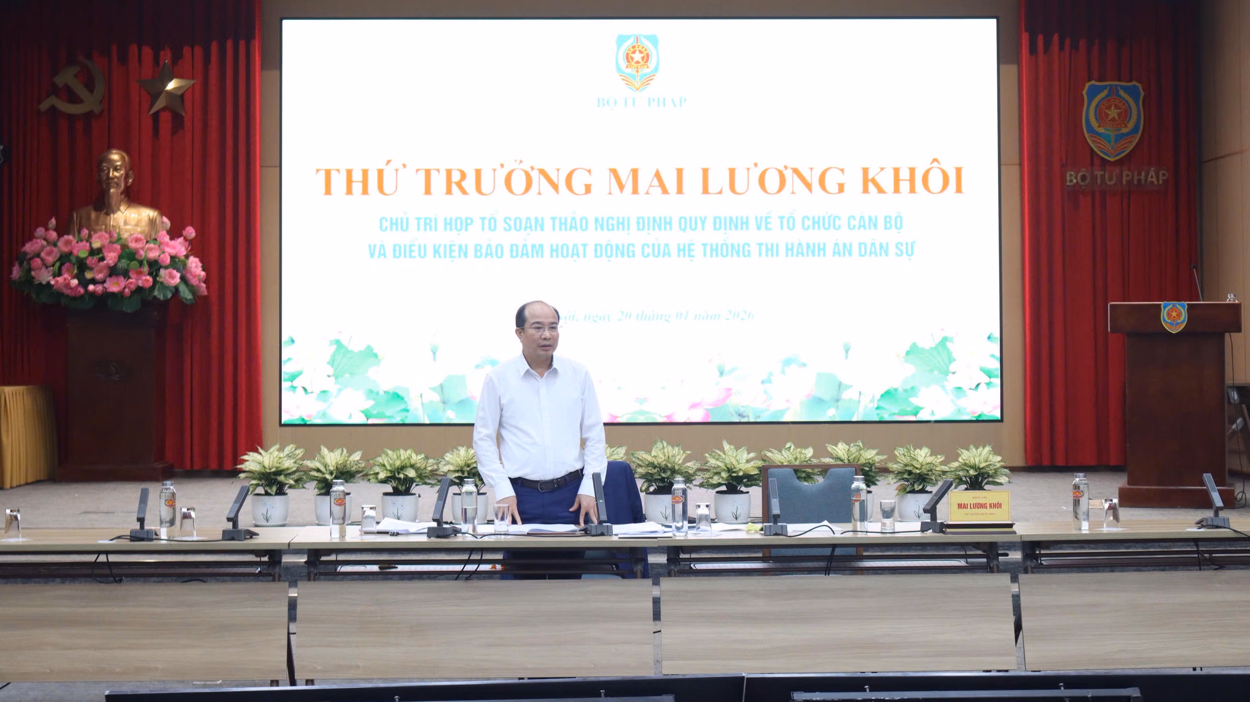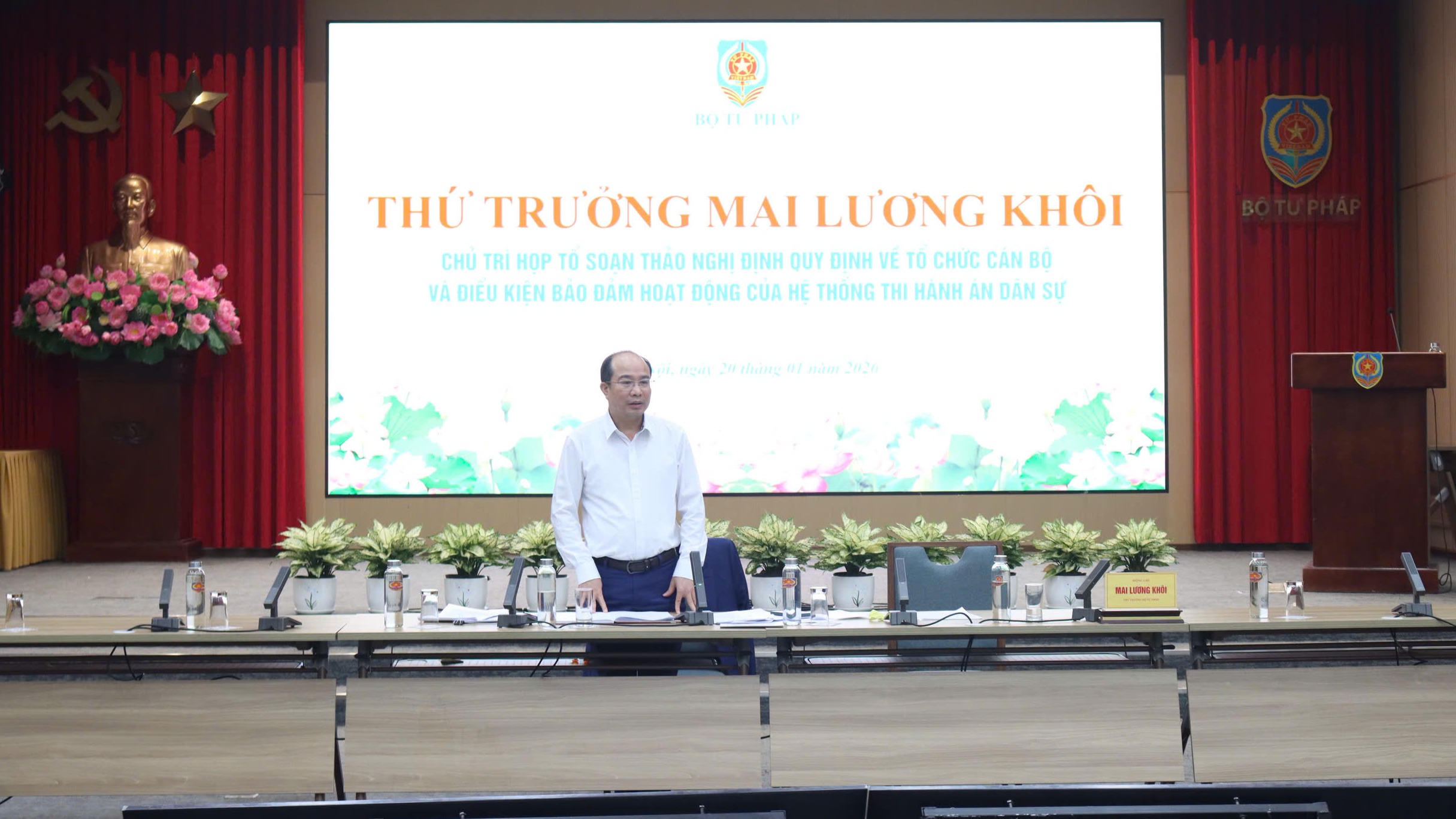 Chiều 20/1, Thứ trưởng Bộ Tư pháp Mai Lương Khôi chủ trì họp Tổ soạn thảo Nghị định quy định về tổ chức cán bộ và điều kiện bảo đảm hoạt động của hệ thống Thi hành án dân sự.