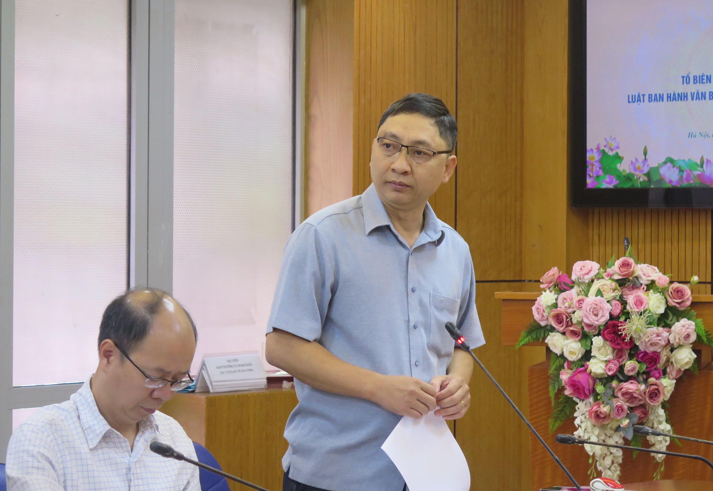 Tại cuộc họp, Vụ trưởng Vụ Các vấn đề chung về xây dựng pháp luật Trần Anh Đức đã báo cáo tiến độ soạn thảo và kết quả chỉnh lý dự thảo Luật Ban hành văn bản quy phạm pháp luật (VBQPPL).
